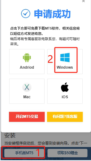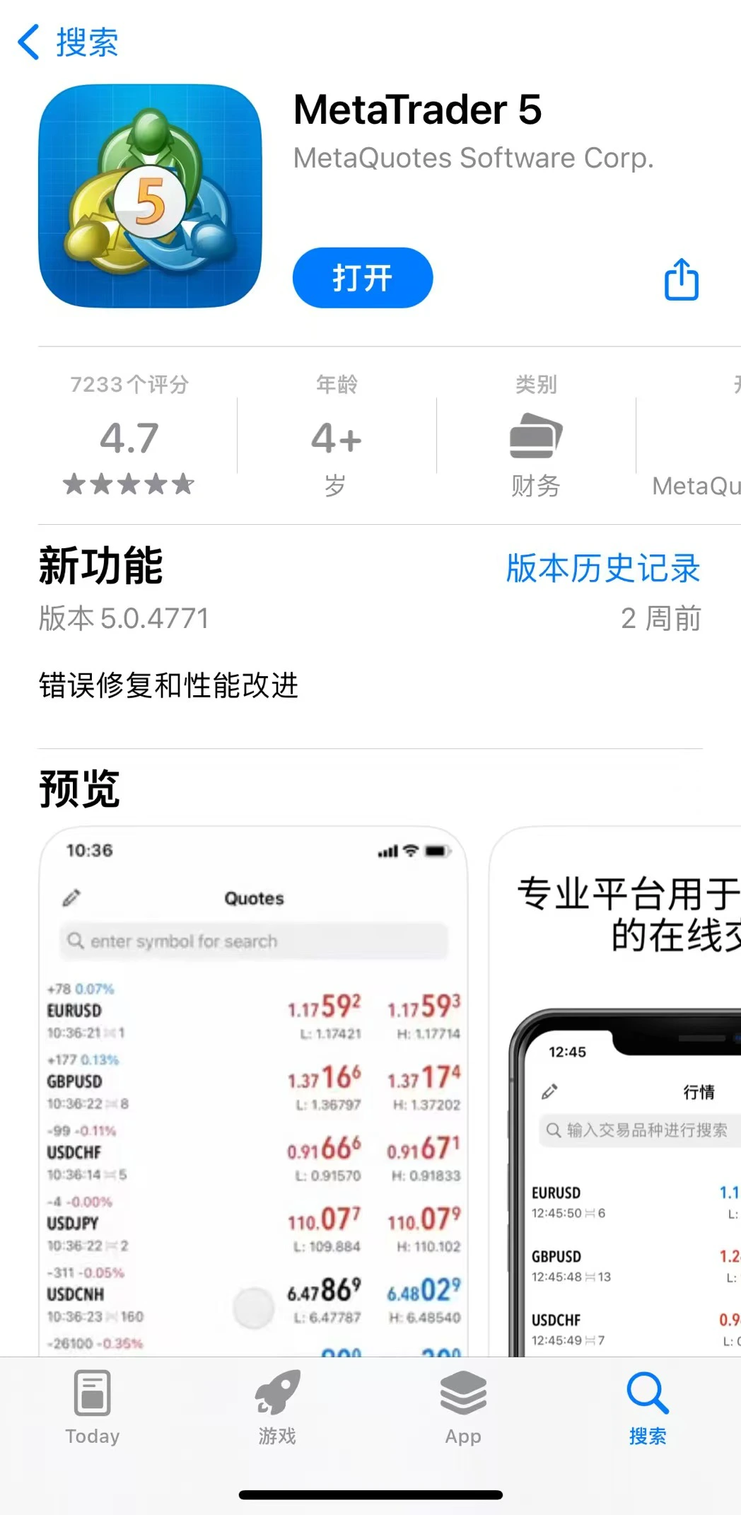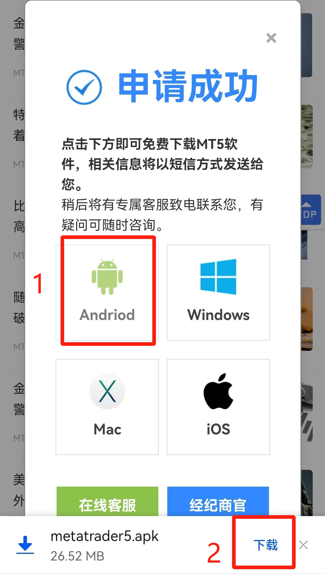 1.点击>> Android版本下载 链接,下载MT5的APK安装文件。